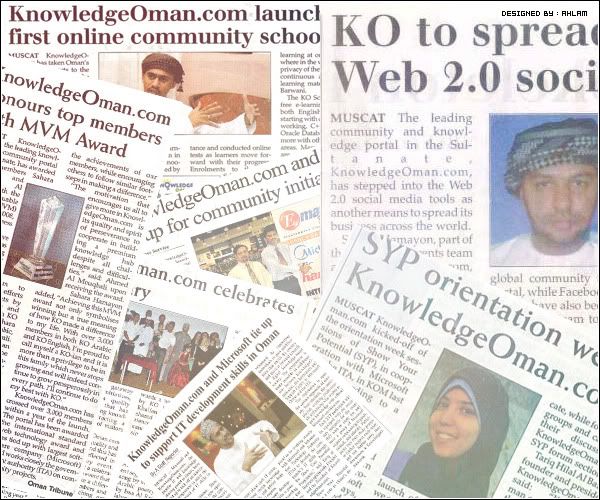 KnowledgeOman.com, the leading community and knowledge portal in the Sultanate of Oman, has strongly stepped into the Web 2.0 social media tools as another means to spread its vision and mission across the world. A KO Facebook, Twitter and Blog have been set up, bringing the highlights of KnowledgeOman.com to interact with the global audience. These social media tools have become a buzz in the latest marketing trends as they connect with thousands of people in the Facebook, Twitter, and Blog community and link them to the source as a two-way conversation.